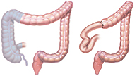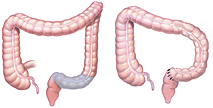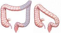 | Right hemicolectomy Part or all of the right side (ascending) colon is removed. The remaining colon is then reconnected to the small intestine. |