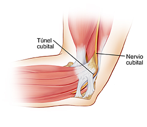 El síndrome del túnel cubital es un conjunto de síntomas que pueden producirse si se pellizca el nervio cubital del codo. Esto puede ocurrir si usted dobla o se apoya en los codos con frecuencia.